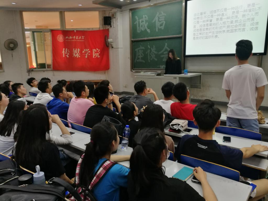 随后,同学们分享了一些有关诚实守信的故事,并对诚信考试、诚信就业等方面展开讨论,以积极引导公司员工树立“诚信第一、品格第一”的理念,并将诚信作为做人的基本准则和立业的根基。
