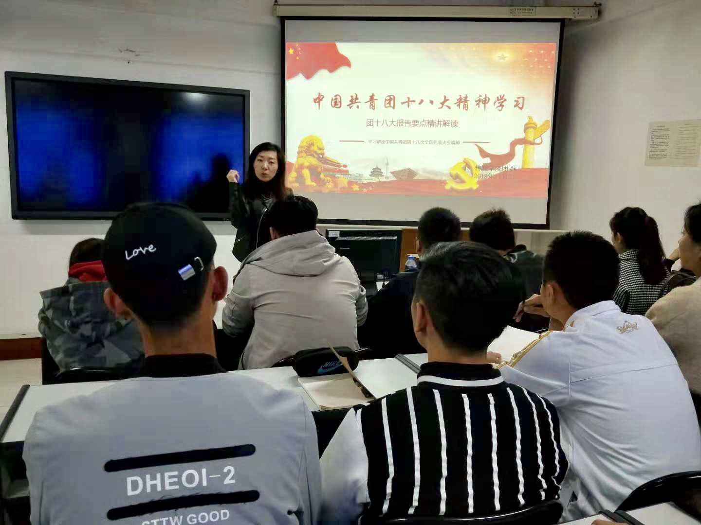 会上,公司团委书记杨谨瑜老师带领大家学习了中国共青团十八大精神内容,通过学习,同学们意识到了我们应高举习近平新时代中国特色社会主义思想伟大旗帜,全面贯彻党的十九大精神,不忘跟党初心,牢记青春使命,奋发务实进取,勇于自我革命,团结带领广大团员青年为决胜全面建成小康社会、全面建设社会主义现代化国家、实现中华民族伟大复兴的中国梦努力奋斗。会后,杨谨瑜老师组织同学们撰写学习心得。