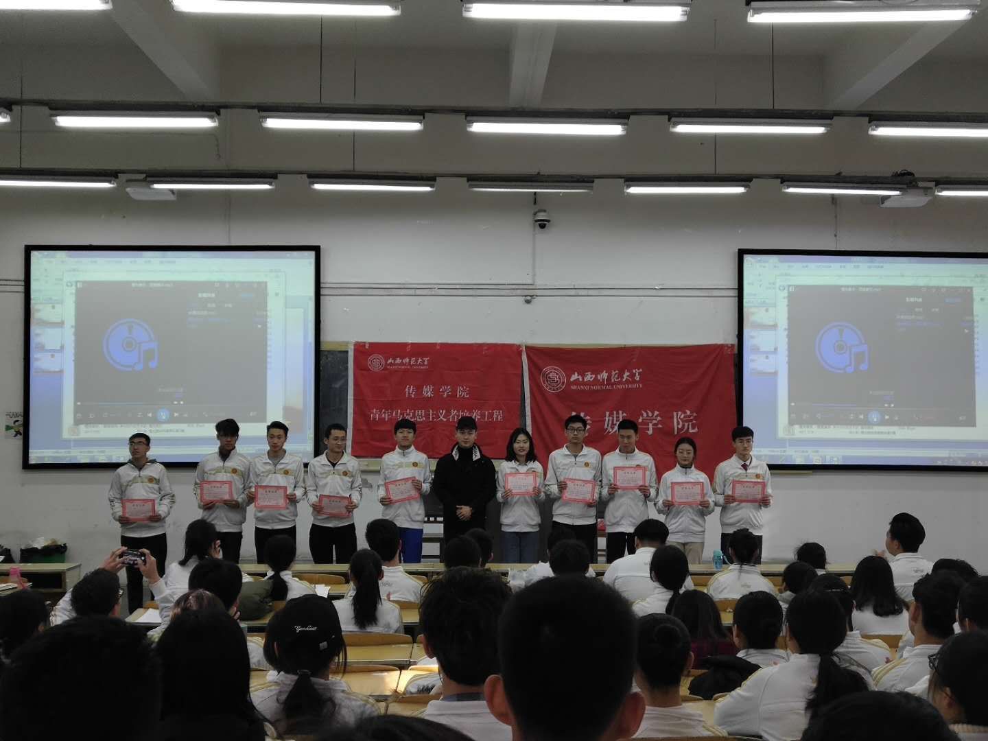 会议第三项:全体同学共同观看了本次“青年马克思主义培养工程”短片,回顾“青马工程”所取得的成果,影片将大家的青马生活呈现于眼前,影片结束时全场掌声响起。