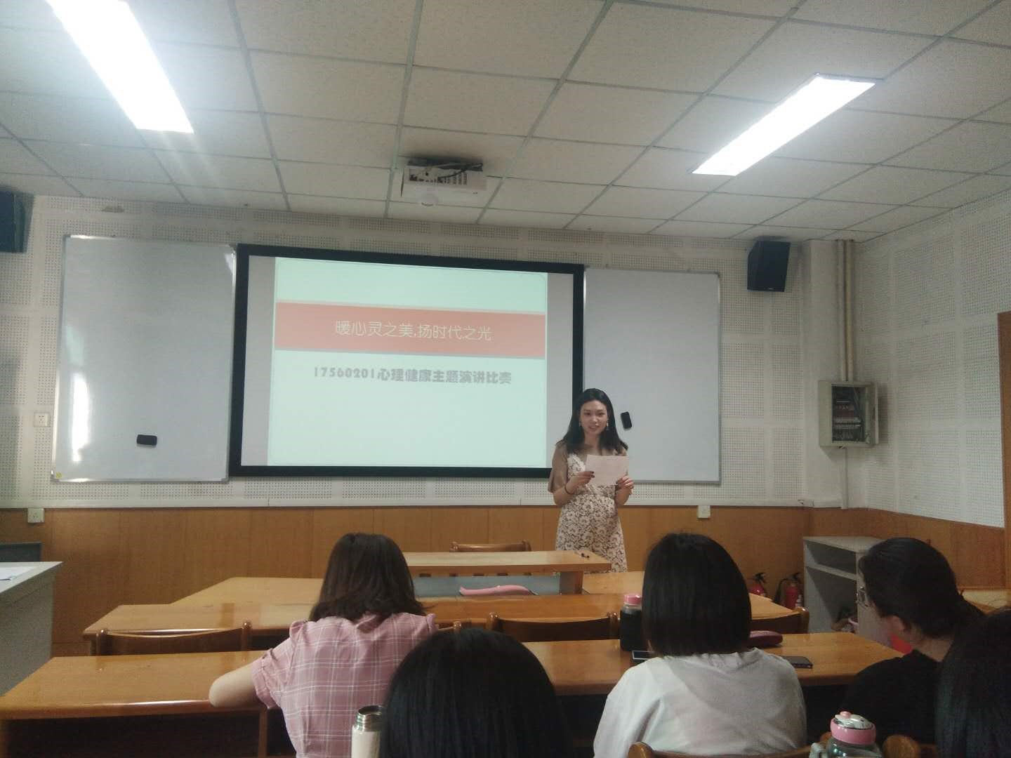 秦于婕同学向同学们介绍了心理健康对于我们人生发展的重要性。此外,103宿舍代表王贺怡以及104宿舍代表薄慧鑫同学也向同学们分享了自己对于心理健康的看法