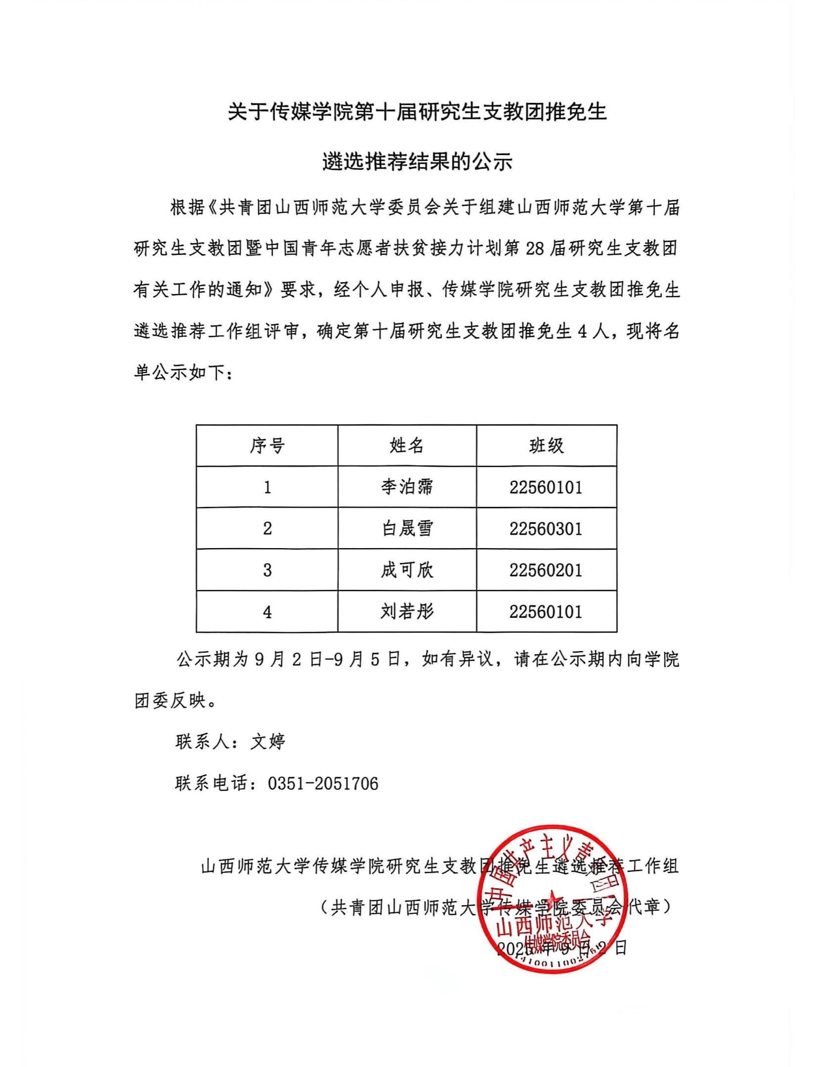 关于emc易倍第十届研究生支教团推免生遴选推荐结果的公示