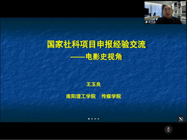 2022年11月25日19时,南阳理工公司王玉良副教授应邀为公司师生作“国家级项目申报经验分享—电影史视角”为主题的线上学术报告。本次报告由emc易倍副经理周婧主持,emc易倍部分教师及员工聆听了此次讲座。