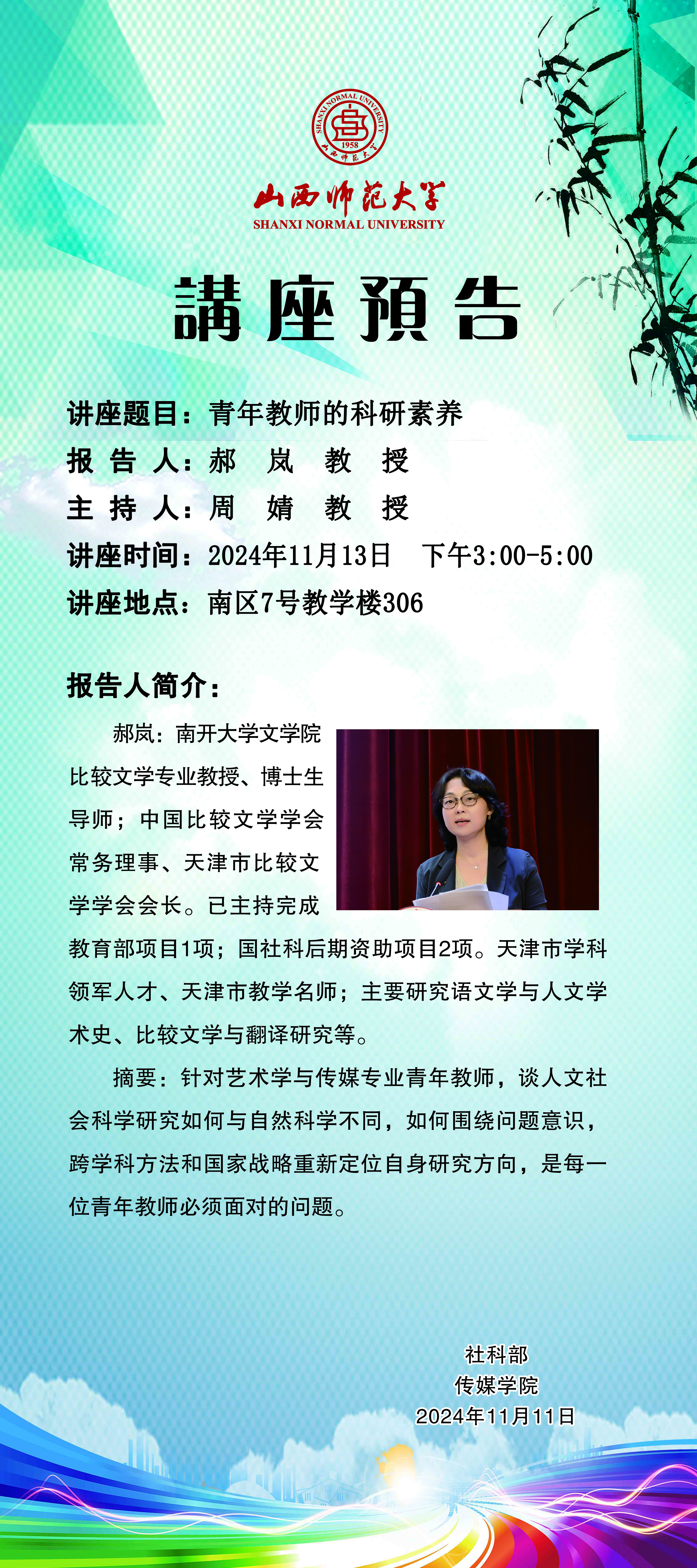 2024年11月13日下午3点,公司特邀南开大学文公司郝岚教授通过线上方式作了题为“青年教师的科研素养”专题讲座。本次报告是emc易倍2025年度国家社科基金申报精品系列讲座之一,由emc易倍副经理(主持行政工作)周婧主持,emc易倍部分青年教师聆听了此次讲座。