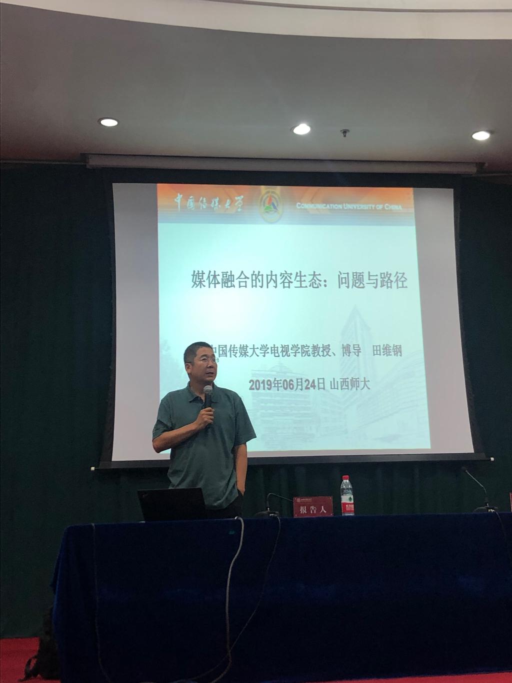 2019年6月24日下午,中国传媒大学教授、博士生导师田维钢老师应公司邀请在科学会堂二层报告厅作了题为《媒体融合的内容生态:问题与路径》的学术报告。本次报告由公司经理曹飞主持,公司部分教师及员工参加了此次报告。
