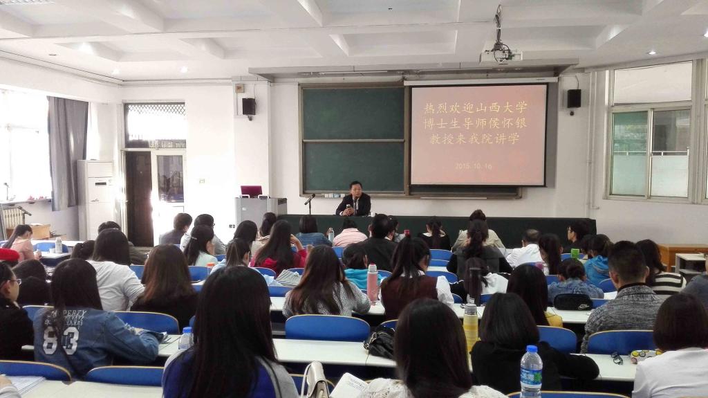 2015年10月16日下午2:30在田家炳书院07126,山西大学博士生导师侯怀银教授作了题为《教育与人生规划》的报告。公司副经理李志河主持,公司大三和大四本科生、在读研究生及教师参加此报告会。